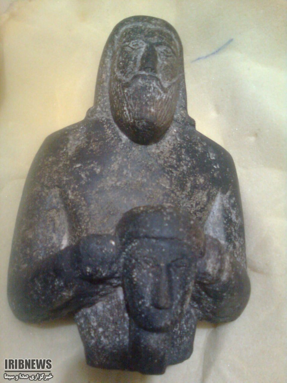 نیم تنه انسانی با سر یک انسان دیگر در دست و خطوط میخی حک شده بر روی آن مشخصات این عتیقه گرانبهاست.