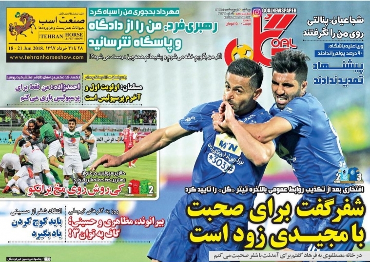 در پیشخوان امروز ، صفحه نخست و تیتر یک برخی روزنامه های ورزشی وشنبه سوم اردیبهشت 1397 را مشاهده می کنید.
