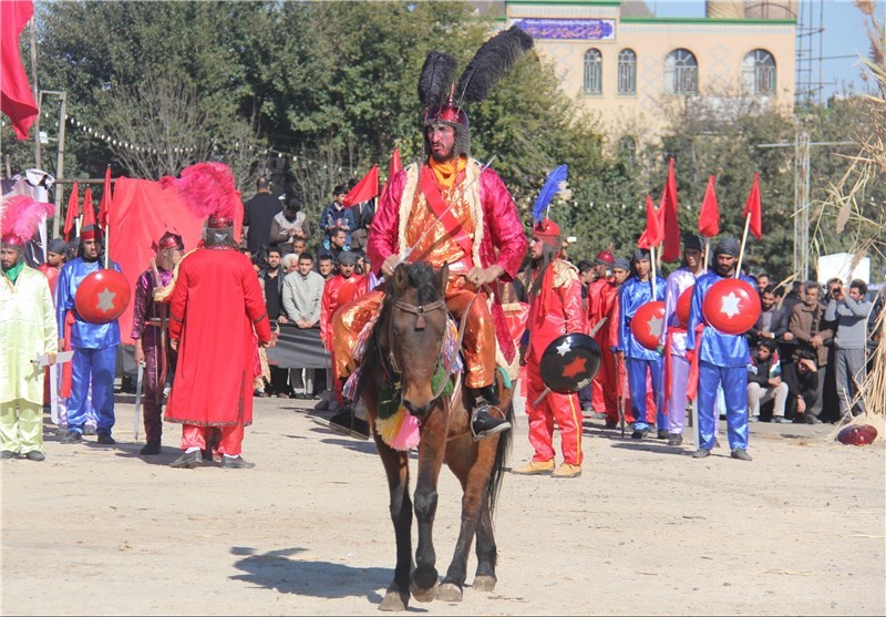 در این آئین معنوی، وقایع روز عاشورای سال 61 هجری قمری از جمله شهادت اباعبدالله الحسین (ع)، شهادت حضرت ابوالفضل العباس (ع)، واقعه حربن یزید ریاحی، جانفشانی اهل بیت و یاران امام حسین (ع) و شهادت حضرت علی اکبر و حضرت علی اصغر (ع) و همچنین آتش زدن خیمه ها به نمایش گذاشته می شود.