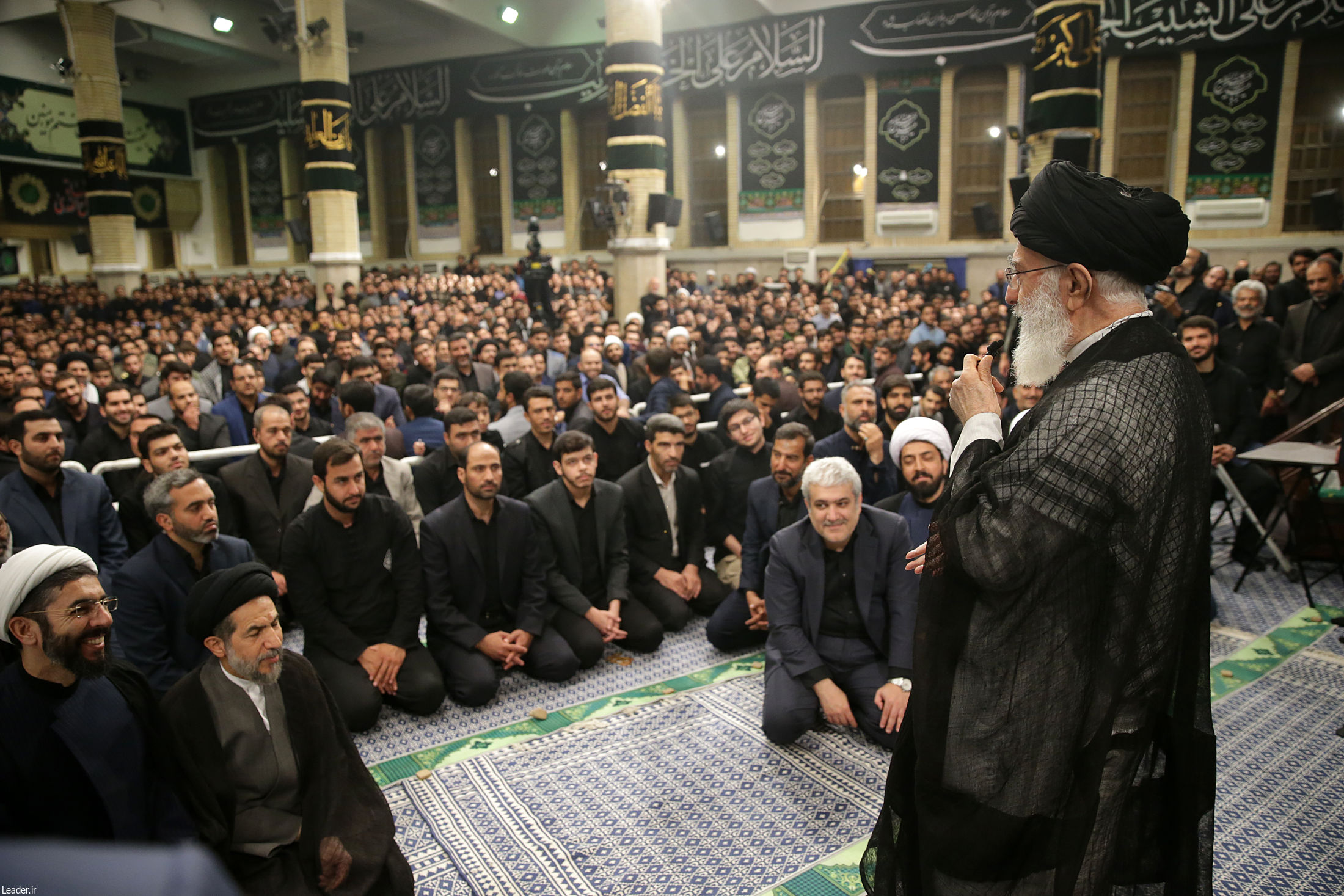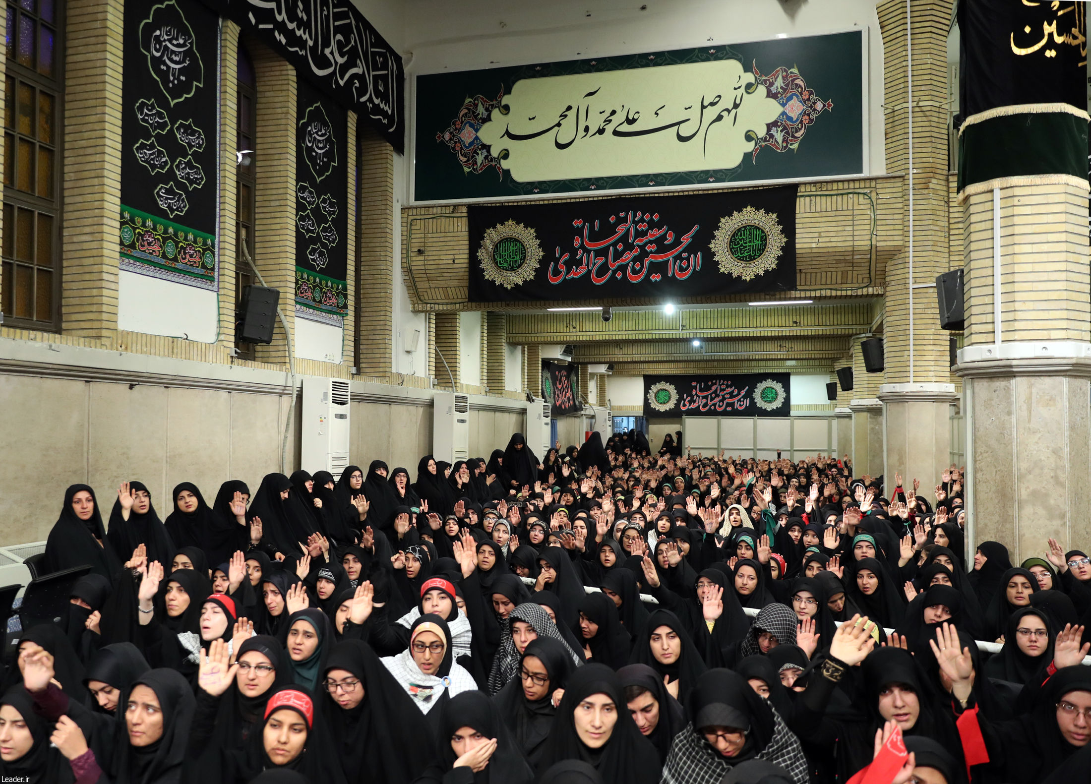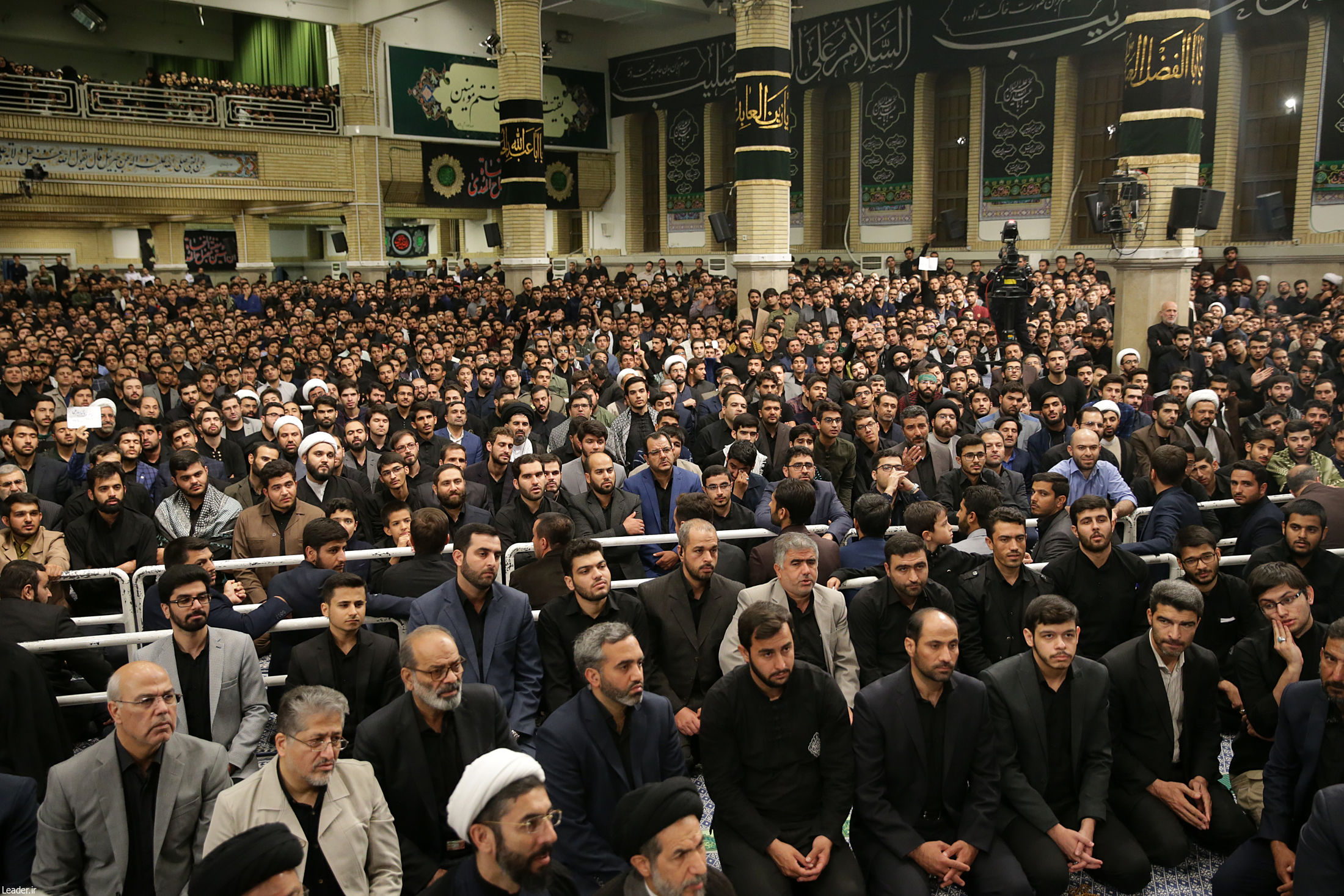 دانشجویان عزادار در حضور رهبر معظم انقلاب همنوا با زائران کربلای معلّی فریاد «لبیک یا حسین» سر دادند