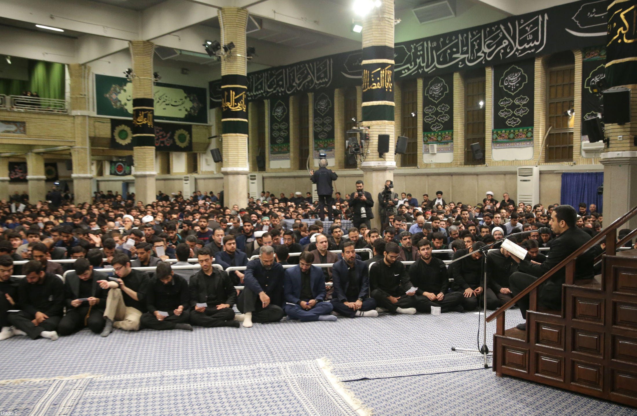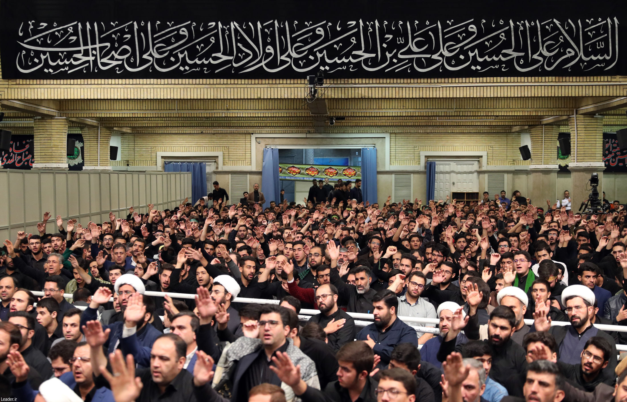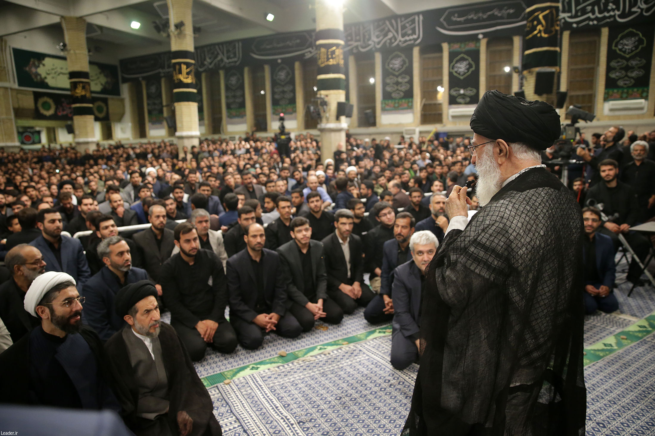 دانشجویان عزادار در حضور رهبر معظم انقلاب همنوا با زائران کربلای معلّی فریاد «لبیک یا حسین» سر دادند