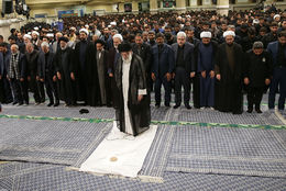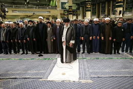 در پایان مراسم، نماز ظهر و عصر به امامت رهبر معظم انقلاب اسلامی اقامه شد.