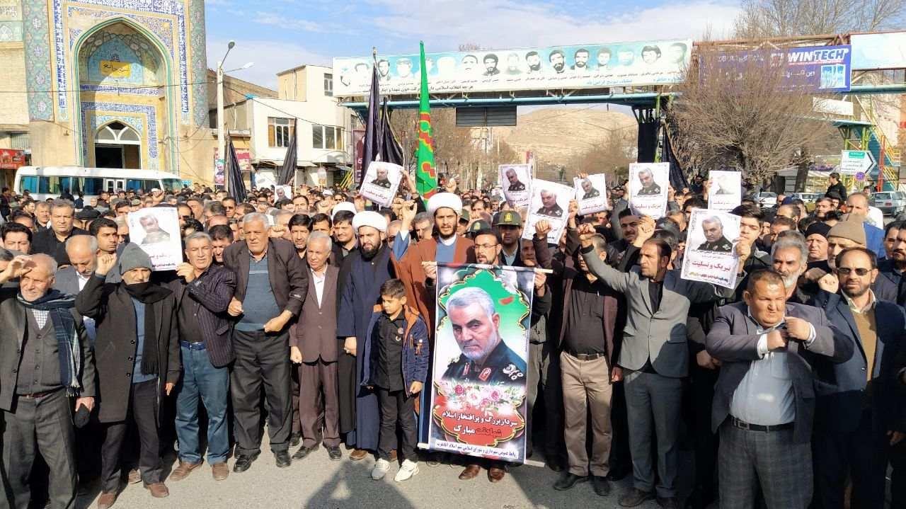 به گزارش خبرگزاری صدا و سیما مرکز کرمانشاه ظهر امروز و پس از اقامه نماز جمعه در سراسر استان کرمانشاه مردم عزادار استان در پی اعلام خبر شهادت سردار سپهبد حاج قاسم سلیمانی به خیابانها رفتند و فریاد مرگ بر آمریکا سر دادند