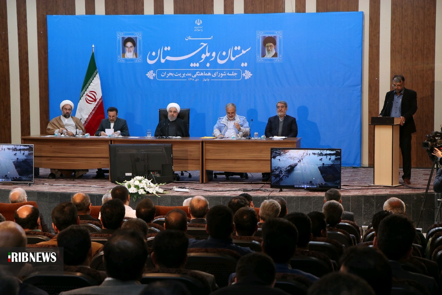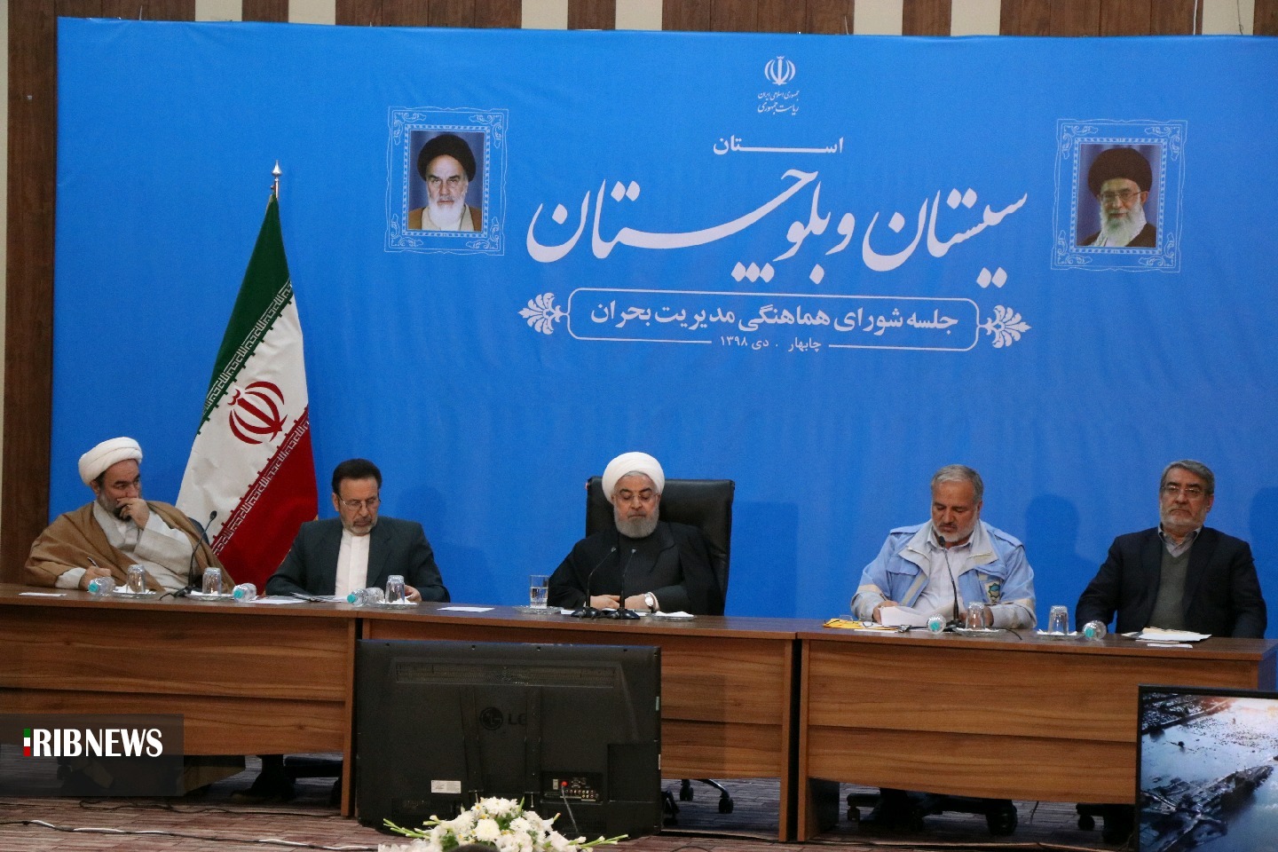 به گزارش خبرگزاری صداوسیما مرکز سیستان و بلوچستان، حجت الاسلام حسن روحانی، عصر امروز در جلسه شورای هماهنگی مدیریت بحران سیستان و بلوچستان در چابهار  با بیان اینکه در باران اخیر مشکلاتی برای مردم جنوب سیستان و بلوچستان پیش آمده است گفت: تمام مردم و مسئولان و نیروهای مسلح درکنار هم در حال رفع مشکلات هستند و بعد از یک هفته سیلاب، ما جان باخته ای نداشتیم.