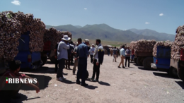 آن طرفتر خریدارانی از تهران به نظر خوشحالترند اگرچه تمایلی به صحبت ندارند اما یکی از کشاورزان می  گوید ازمن بپرسید