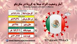 مکزیک در جایگاه پنجم قربانیان کرونایی قرار گرفت شبکه تلویزیونی ب. اف. ام فرانسه (BFMTV) در صفحه رسمی خود در توئیتر گزارش کرد، مکزیک به لحاظ تلفات ناشی از شیوع ویروس کرونا، جایگاه پنجم را به خود اختصاص داد.