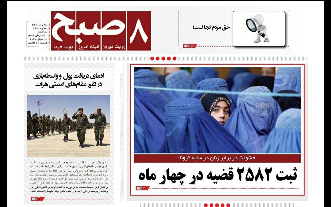 - خشونت با زنان افغان زیر سایه کرونا، ثبت دو هزار و پانصد و هشتاد و دو مورد خشونت با زنان در چهار ماه اخیر.