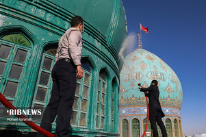 شست و شوی گنبد و تعویض پرچم مسجد مقدس جمکران