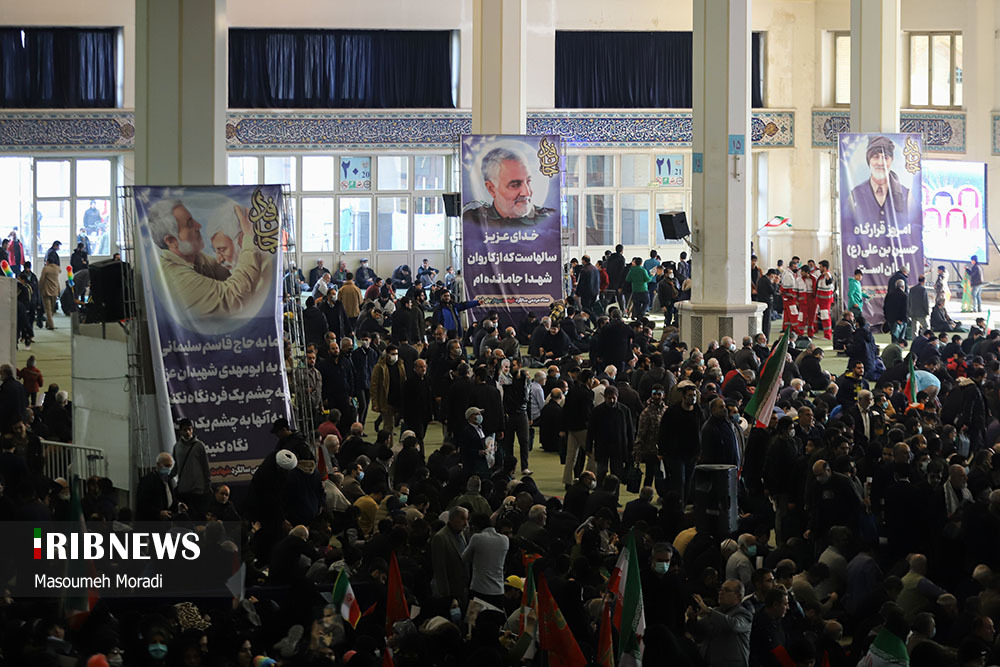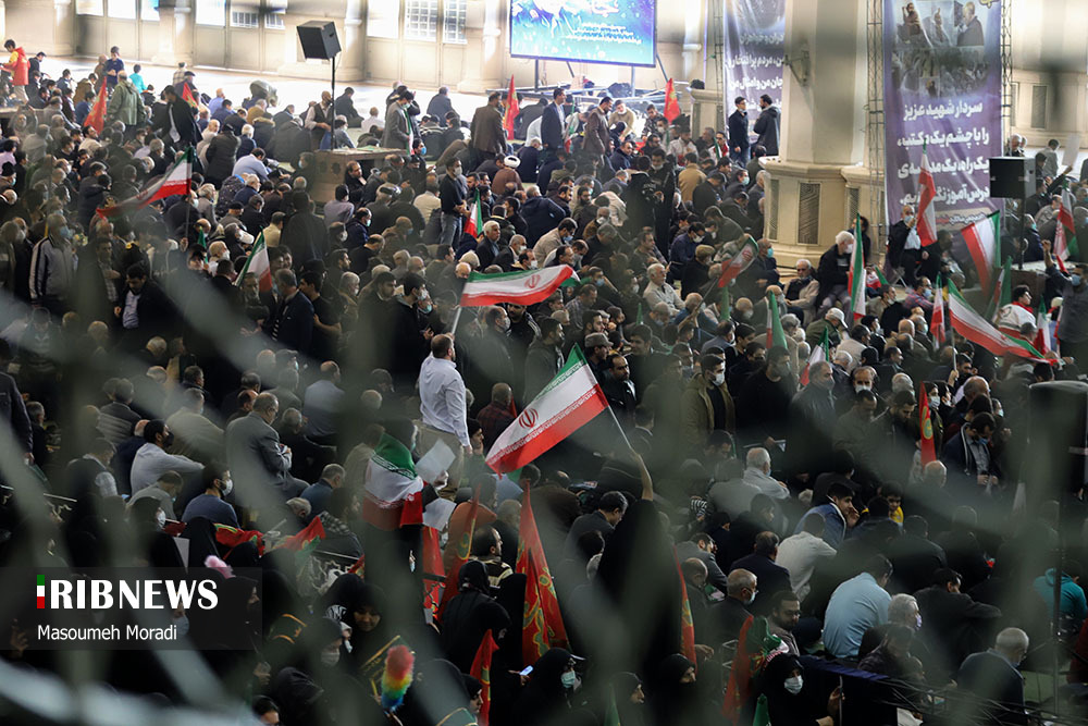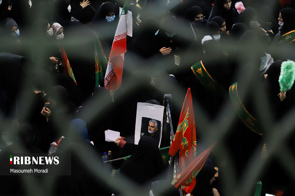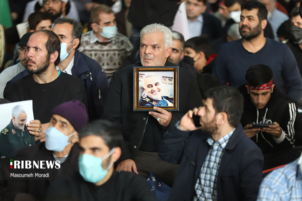 مراسم گرامیداشت سومین سالگرد شهادت سردار سپهبد حاج قاسم سلیمانی با حضور رئیس جمهور و مقامات لشکری و کشوری و جمعیت زیادی از عاشقان ولایت و خانواده شهید سلیمانی عصر امروز ۱۳ دی ماه ۱۴۰۱ در مصلی تهران برگزار شد.