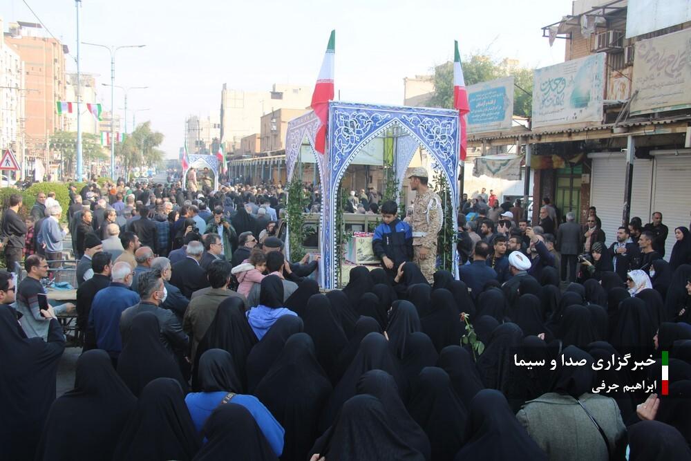 مراسم تشییع پیکر مطهر شهدای گمنام دوران دفاع مقدس صبح امروز پنجشنبه ۱۵ آذر ۱۴۰۳ همزمان با سالروز شهادت حضرت فاطمه زهرا (سلام الله علیها) در همدان و اهواز و مشهد برگزار شد.
