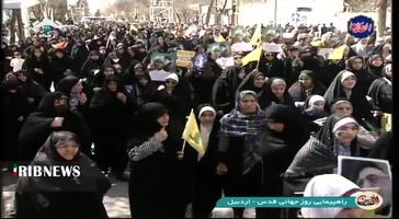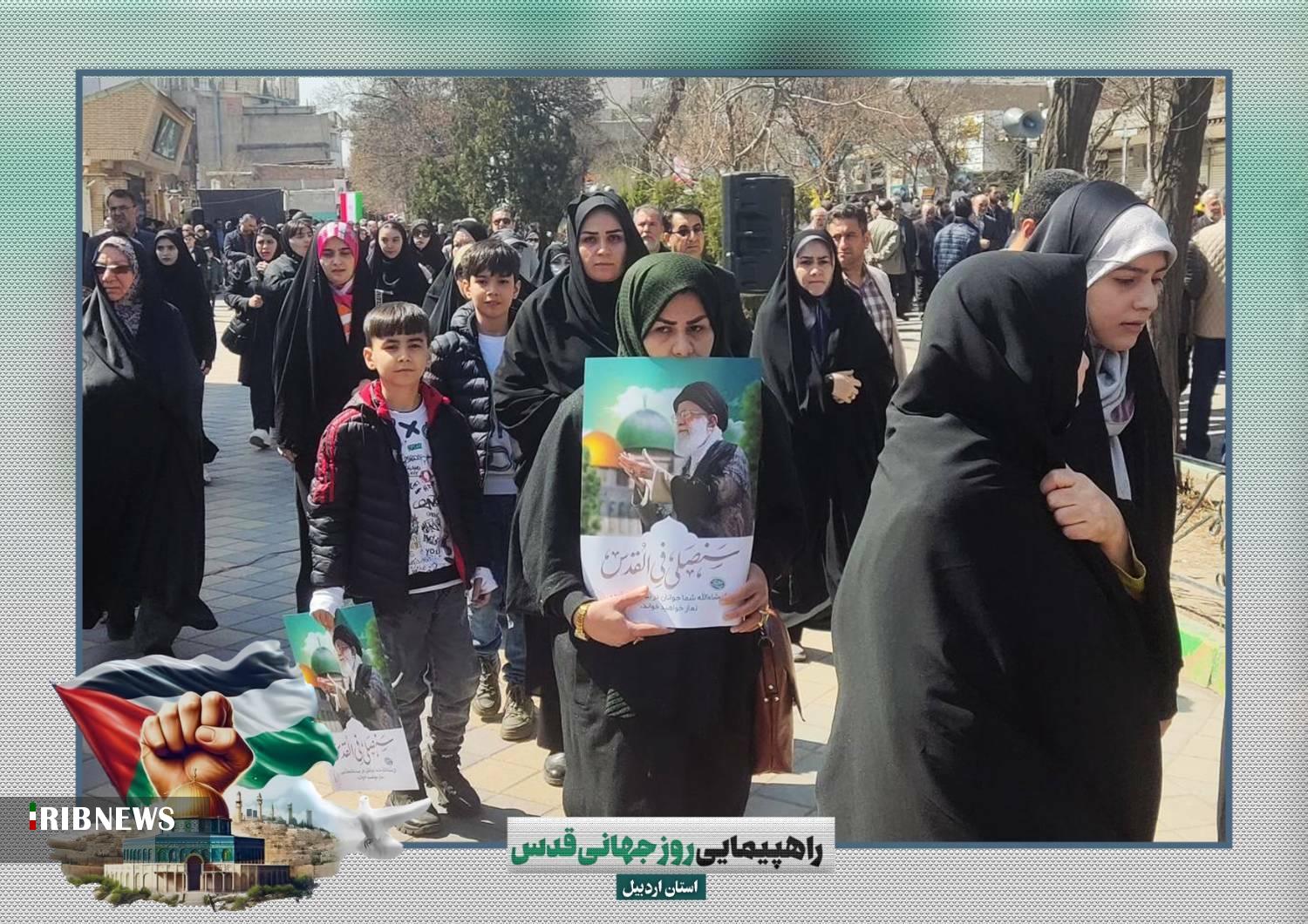 به گزارش خبرگزاری صداوسیما، مرکز اردبیل، زنان، مردان، جوانان و نوجوانان اردبیلی از همه صنفها و گروهها گرد هم آمدند تا بار دیگر اعلام کنند که فلسطین زنده است و غده سرطانی اسرائیل در حال زوال و نابود شدن است.