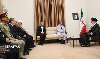 آقای «شهباز شریف»، نخست وزیر پاکستان و هیئت همراه عصر امروز دوشنبه ۵ خرداد ۱۴۰۴، با حضرت آیتالله خامنهای رهبر معظم انقلاب اسلامی دیدار کردند.