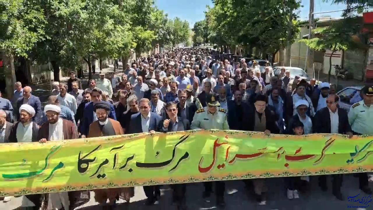 به گزارش خبرگزاری صدا و سیما مرکز آذربایجان شرقی، مردم همیشه در صحنه استان در مناطق مختلف امروز پس از اقامه نماز جمعه با راهپیمایی خود، خشم و انزجار خود را از رژیم صهیونیستی و حامی جنایتکارش آمریکای جهانخوار نشان دادند و بیعت تازه خود را با ولی امر مسلمین جهان امام خامنه ای عزیز به رخ جهانیان کشیدند.