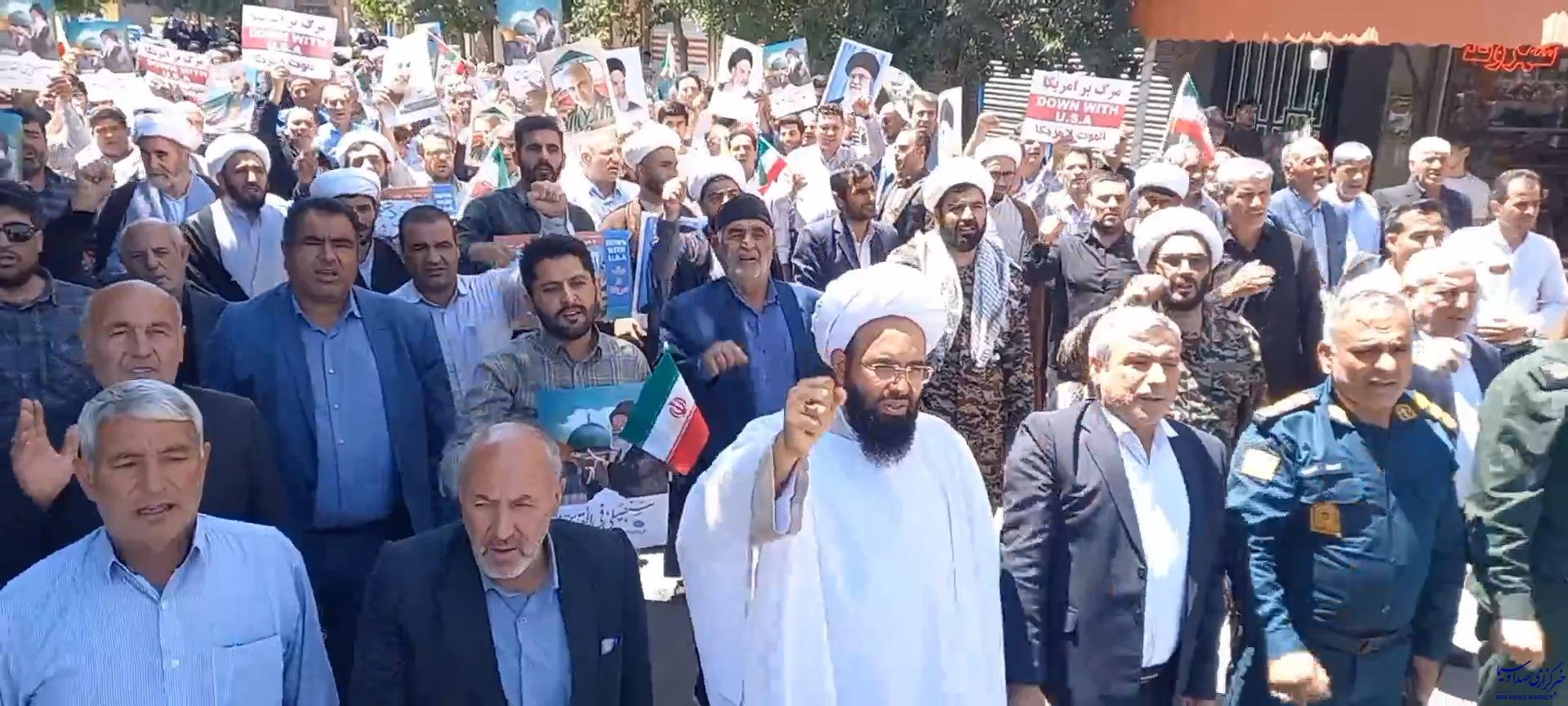 تبریزی های غیور هم همزمان با تجاوز رژیم غاصب صهیونیستی به خاک پاک میهن اسلامی و پاسخ کوبنده و غرورانگیز نیروهای مسلح جمهوری اسلامی ایران و توهین وقیحانه رئیس جمهور دلقک آمریکا دونالد ترامپ به محبوب قلبها و مقتدای ملت ایران رهبر معظم انقلاب، حضرت آیت‌الله العظمی امام خامنه‌ای(مدظله‌العالی) و تهدید گستاخانه جان ایشان، پرده از چهره کریه استکبار برداشتند.