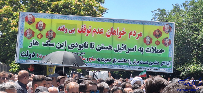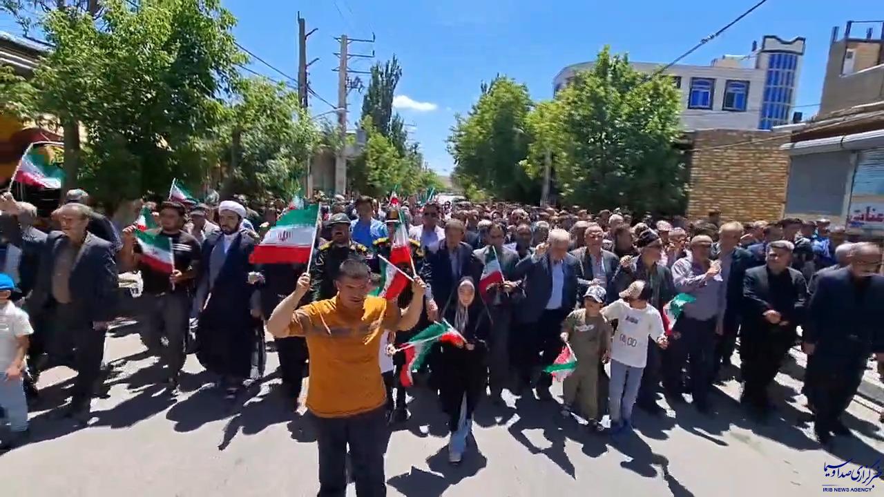 مردم با شعارهای«مرگ بر آمریکا، مرگ بر اسراییل، مرگ بر منافق، مرگ بر سازشکار، خونی که در رگ ماست هدیه به رهبر ماست، آذربایجان جانباز خامنه ای دن آیریلماز» از عملیات رزمندگان اسلام علیه دشمن صهیونی دفاع کردند و نابودی رژیم کودک کش اسراییل را از نیروهای مسلح کشورمان خواستار شدند.