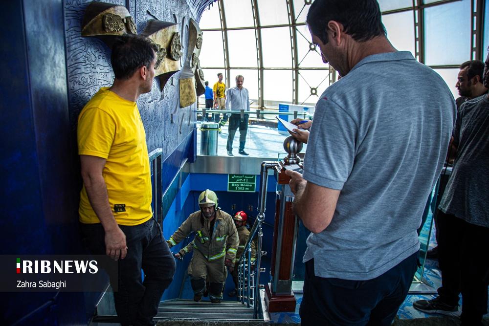 مسابقه پله‌نوردی آتش‌نشانان با لباس حریق، امروز سه‌شنبه ۸ مهر ۱۴۰۴ به مناسبت روز آتش نشان و با حضور آتش نشانان آقا و خانم در برج میلاد تهران برگزار شد.