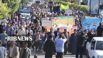 شرکتکنندگان با در دست داشتن پرچمهای ایران و پلاکاردهایی با شعارهای "مرگ بر آمریکا" و "مرگ بر اسرائیل"، بار دیگر وفاداری خود را به آرمانهای امام خمینی(ره) و تبعیت از مقام معظم رهبری به نمایش گذاشتند.