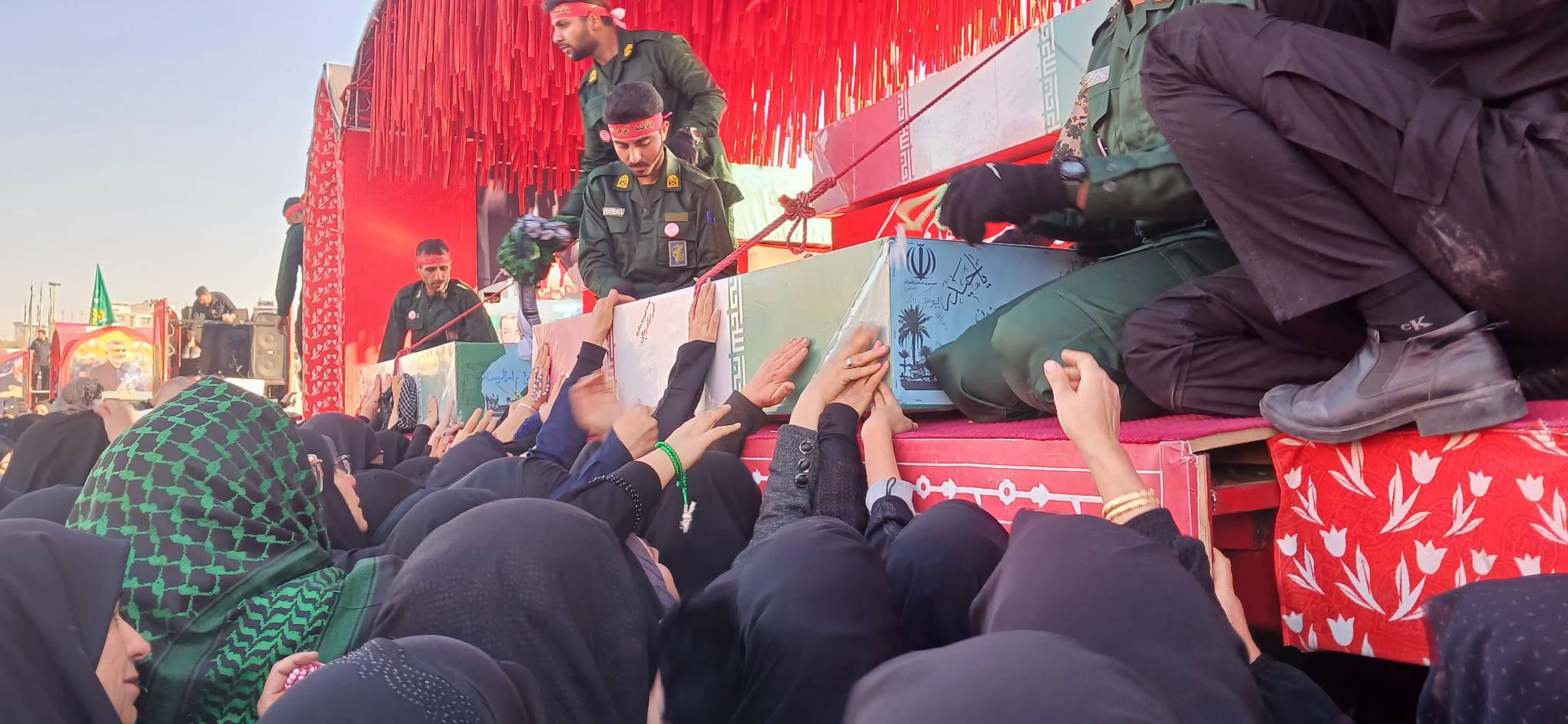 مردم نصف جهان از صبح امروز برای استقبال از قهرمانان کشورشان به میعادگاه دیدار با پیکر ۱۲ شهید گمنام دفاع مقدس در میدان بزرگمهر آمده اند تا عهد وفاداری به اسلام، ولایت، دفاع از میهن، احترام به خانواده شهدا و تبعیت از هر آنچه خوبی است برای ذخیره آخرت را ثابت کنندو این دلاوردمردان وطن را تا گلستان شهدا قطعه ای از بهشت بدرقه کنند.