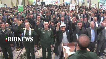 شرکت کنندگان در این همایش پرشور ضمن گرامیداشت یاد و خاطره شهدای جنگ تحمیلی ۱۲ روزه دشمن آمریکایی ـ صهیونیستی به خاک کشورمان بر ضرورت پاسخ محکم، فلج کننده و دندان شکن نیرو‌های مسلح جمهوری اسلامی به هرگونه تجاوز رژیم صهیونیستی به ایران و محو غده سرطانی رژیم کودک کش صهیونیستی از جهان تاکید و آمادگی خود را برای اجرای فرامین فرمانده کل قوا امام خامنه‌ای اعلام کردند.